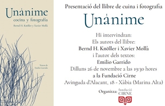 Presentation of the cook- and photographybook "Unánime". The authors of the book will take part: Bernd H. Knöller and Xavier Mollà, and the author of the texts: Emilio Garrido.